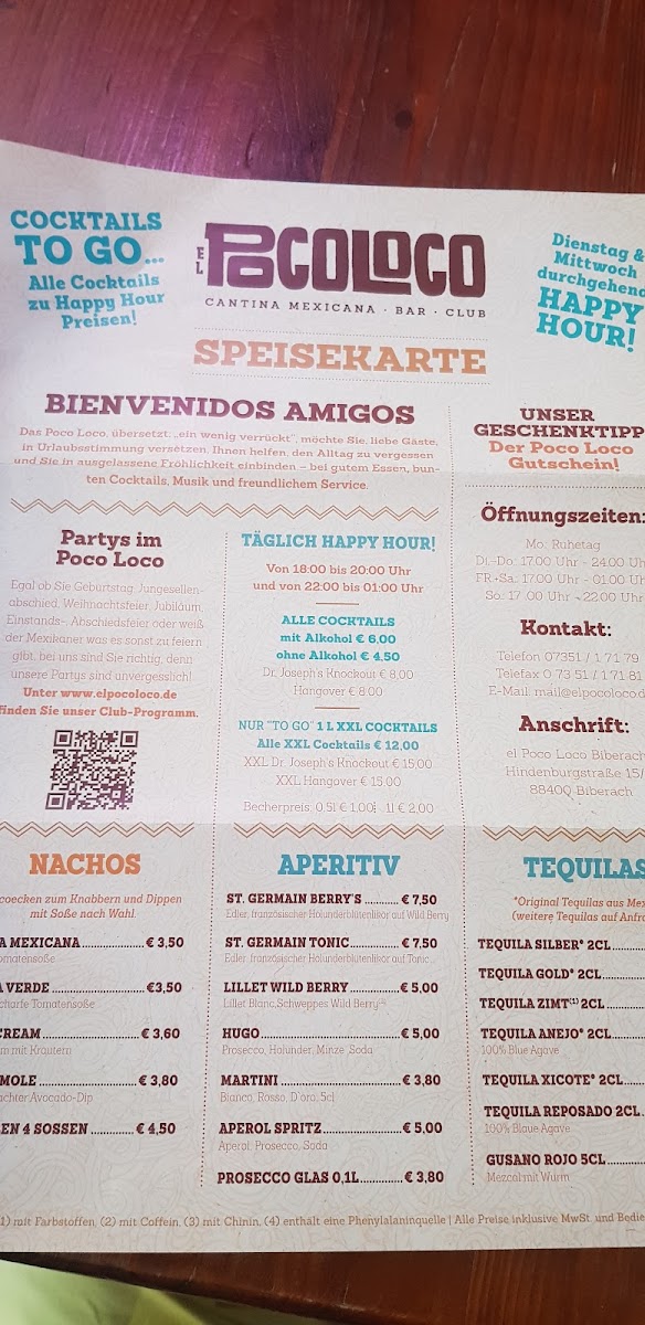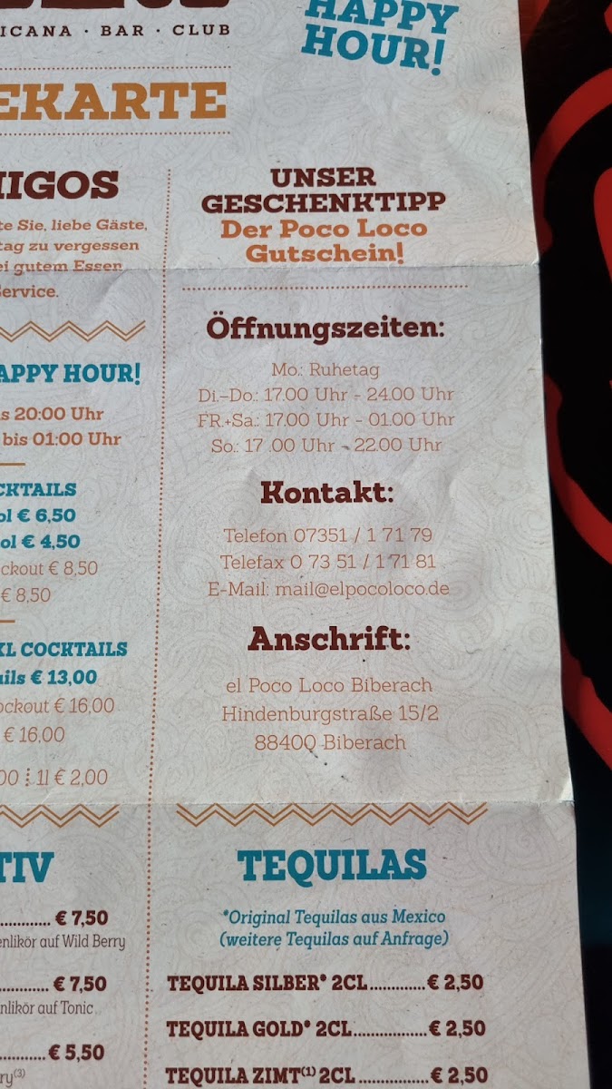 el Poco Loco Biberach Menu